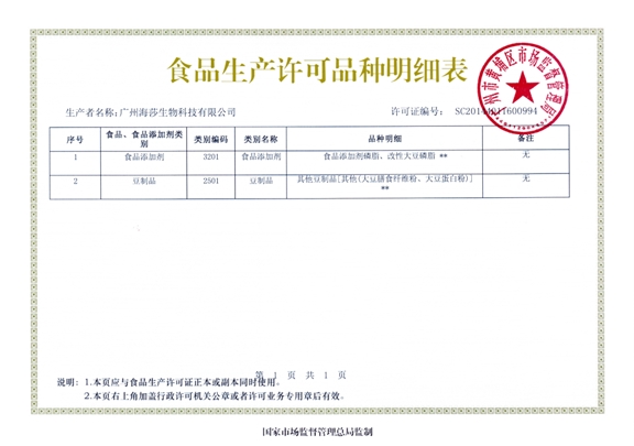 生產(chǎn)許可,明細(xì)
